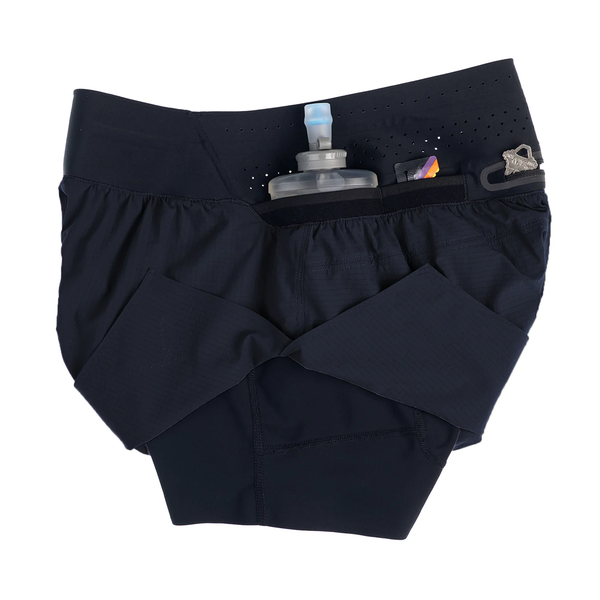 Built to go further with nothing on your back. The Raide Women's TrailTech short was born out of a frustration with the current shorts on the market, which are unable to carry hydration/nutrition in a bio-mechanically efficient and stable way. We took inspiration from running tights and built them into a short, giving you bounce-free storage for every run. Designed to integrate seamlessly with our running belts. Part of the TrailTech System.